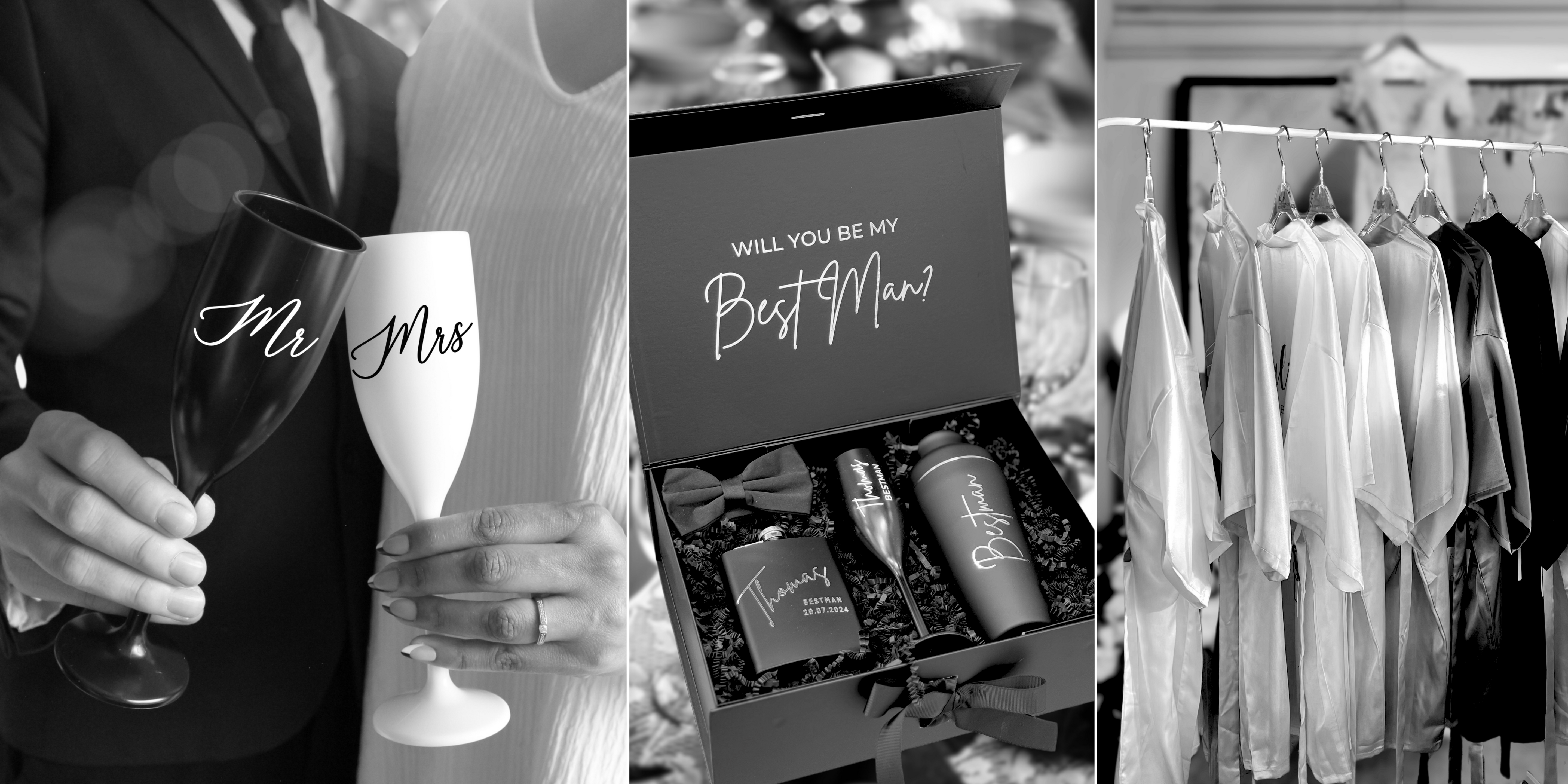 T-shirts eller sashes med tryck (t.ex. ”Team Bride”)